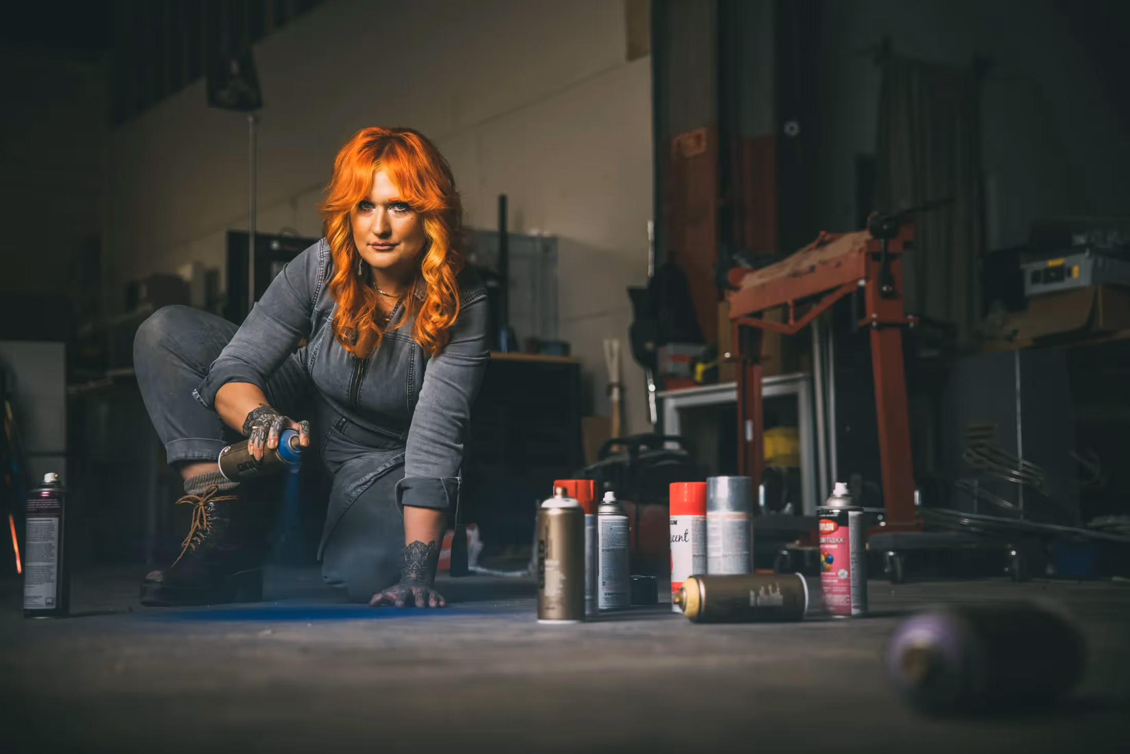 Mary is an incredible artist. I place her in front of one of her 6'x6' paintings to create this shot.